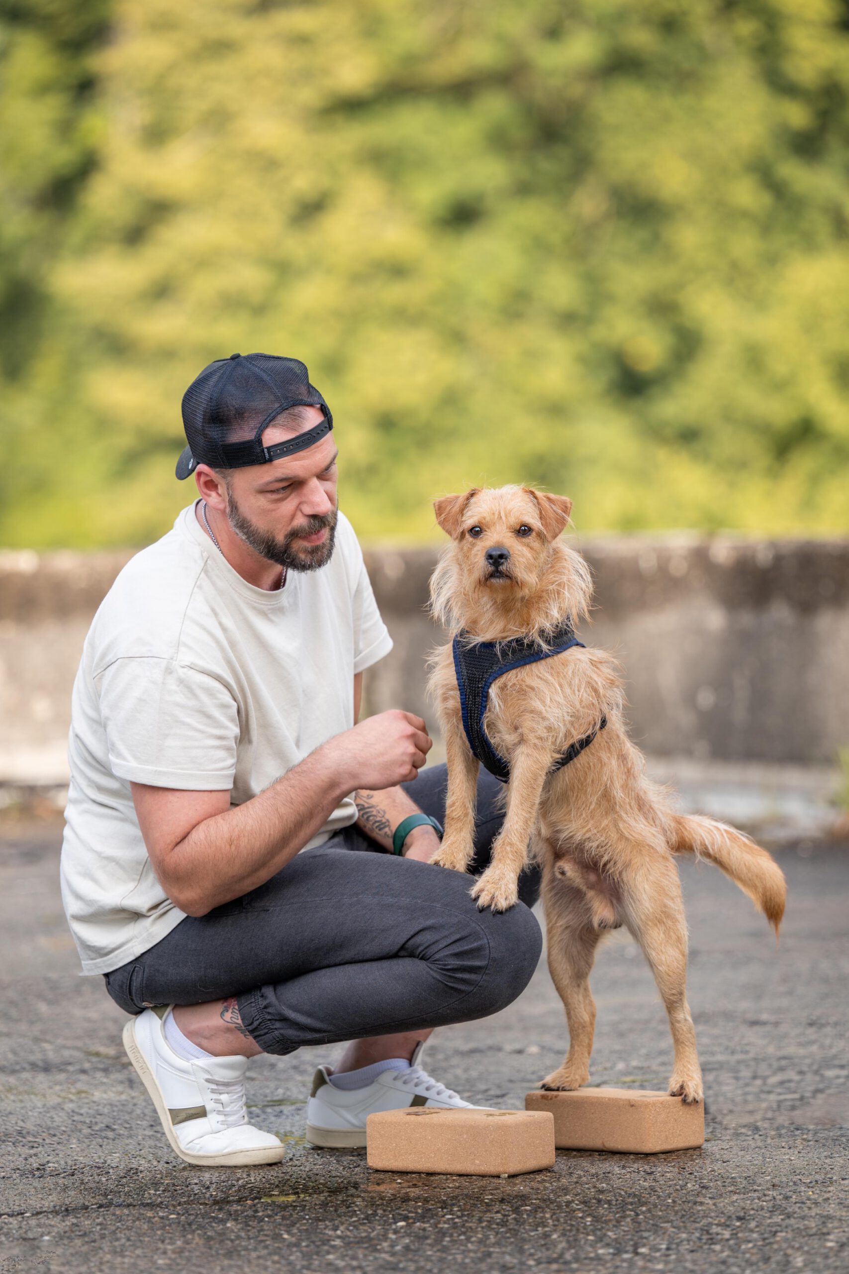 Mein Name ist Eric Schlüns, geboren 1989. Schon früh entdeckte ich meine Leidenschaft für Hunde, damals schien der Weg jedoch nur über klassische Berufe wie Tierarzt oder Hundetrainer zu führen. So startete ich zunächst meine berufliche Laufbahn in der Gastronomie. Eine entscheidende Wendung nahm mein Weg mit meiner französischen Bulldogge Emmy, die an einer Patellaluxation erkrankte. Der Wunsch, ihr bestmöglich zu helfen, war der Auslöser: Ich wollte mehr tun, nicht nur für Emmy, sondern auch für meine anderen drei Hunde und all die tapferen Pfoten Helden da draußen. So begann ich meine Ausbildung zum Hundephysiotherapeuten und schloss diese erfolgreich mit Zertifizierung nach Wosslick ab. Heute arbeite ich mit Herz, Einfühlungsvermögen und fundiertem Fachwissen, um Hunden auf ihrem Weg zu mehr Beweglichkeit und Lebensfreude zu helfen.